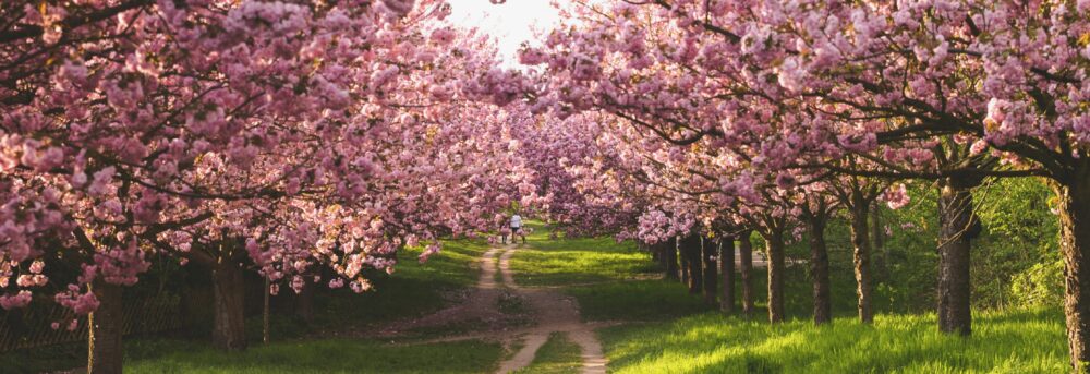 inheriting two Rainier cherry trees, twin spindly sentries standing side by side.